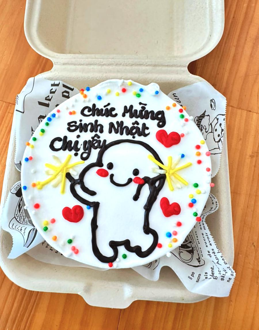 “Mình đặt một chiếc bánh vẽ hình meme cho con bạn thân, nó nhận được mà nó cười không ngậm được mồm. Bánh nhỏ xinh mà chất lượng lắm nha, kem ngon xỉu.” – Bạn Minh Thư (Sinh viên)