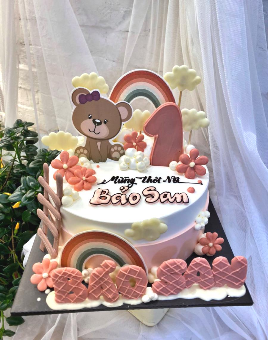 Tính cách của bé cũng ảnh hưởng đến kiểu dáng bánh: nếu bé hoạt bát, vui nhộn thì nên chọn mẫu bánh nhiều màu sắc, chi tiết vui tươi, hoặc có thêm phụ kiện bánh như bóng bay, nến hình thú, hình ngôi sao. Ngược lại, với những bé gái trầm tính, nhẹ nhàng, nên chọn mẫu bánh ít chi tiết, phối màu pastel đơn sắc và bố cục hài hòa, sang trọng.