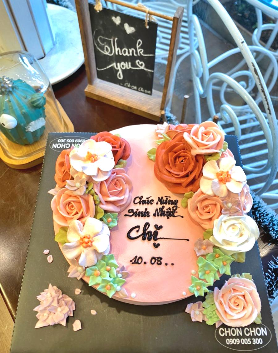 Bánh sinh nhật bắt hoa kem nhiều màu mix hoa hồng